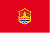 - Bandera rectangular de proporciones 2:3, roja con el escudo en el centro. Aprobación. Bandera en uso desde al menos 1991.
