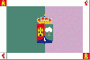 - Bandera compuesta por dos franjas verticales iguales, verde al asta y morado al vuelo y una bordura de color blanco, cuyo ancho (el de la bordura) equivale a una sexta parte de la bandera. Sobre la bordura, en la esquina superior del asta y en la inferior del vuelo está representado un castillo amarillo sobre fondo rojo. En la esquina superior del vuelo y en la inferior del asta, está representado un león rojo sobre fondo blanco. En la parte central de la bandera se encuentra el escudo de la localidad. Bandera aprobada por la Diputación Provincial de Burgos el 10 de febrero de 2000. Publicada en el Boletín Oficial de Castilla y León el 3 de marzo de 2000.
